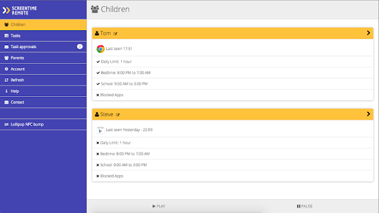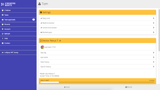 Screen Time Remote Control is a parental control app that allows you to monitor and manage your children's Screen Time remotely from your own phone or tablet.
